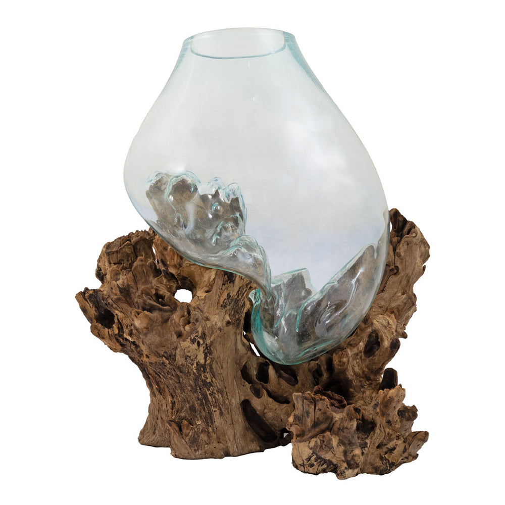 Vaza din lemn de gamal si sticla Jiwa 30cm