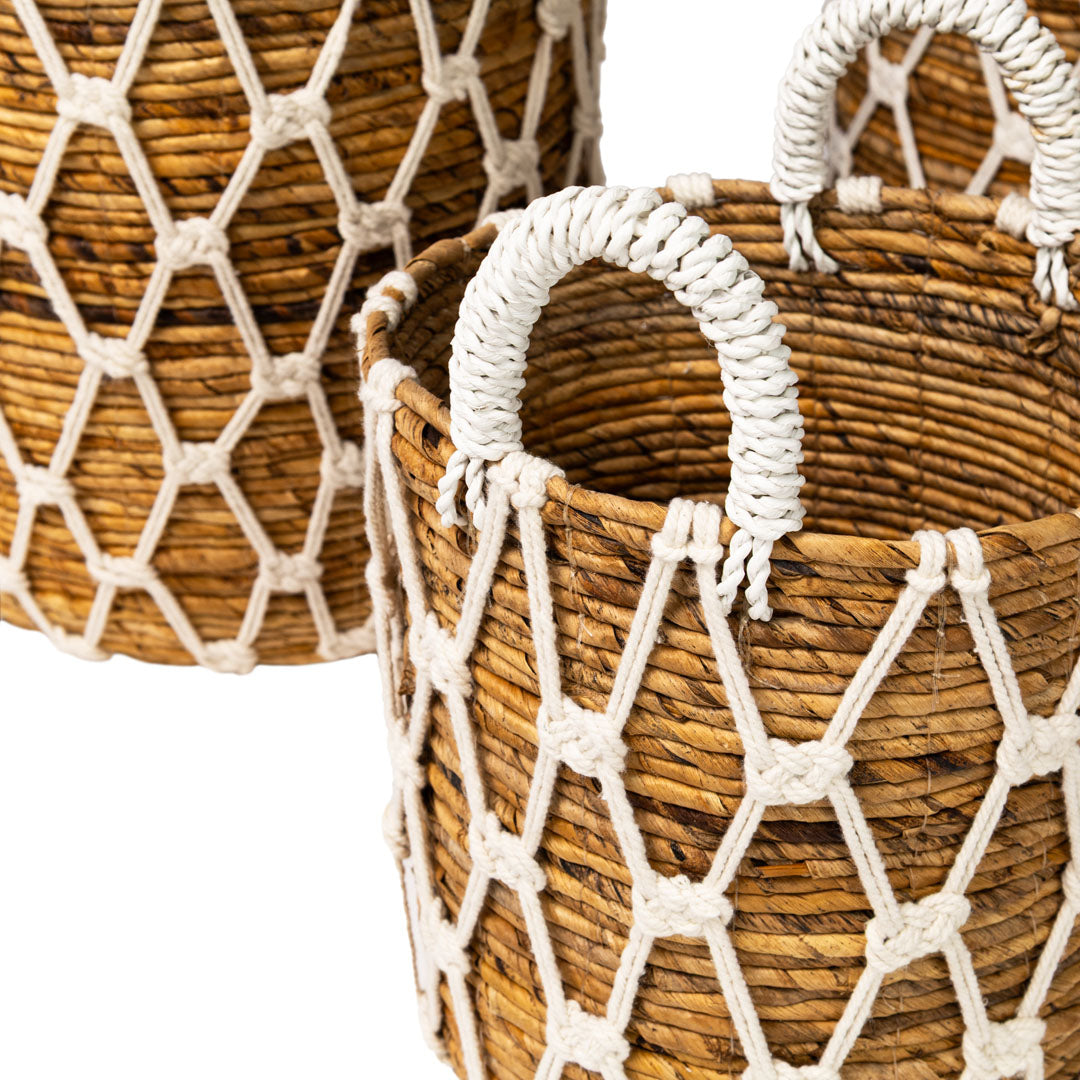 Set 4 cosuri depozitare albe din fibre de bananier si bumbac Atlantis