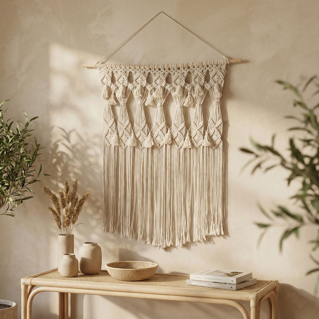 Decoratiune ivoire din macrame bumbac, lemn de tec Liora