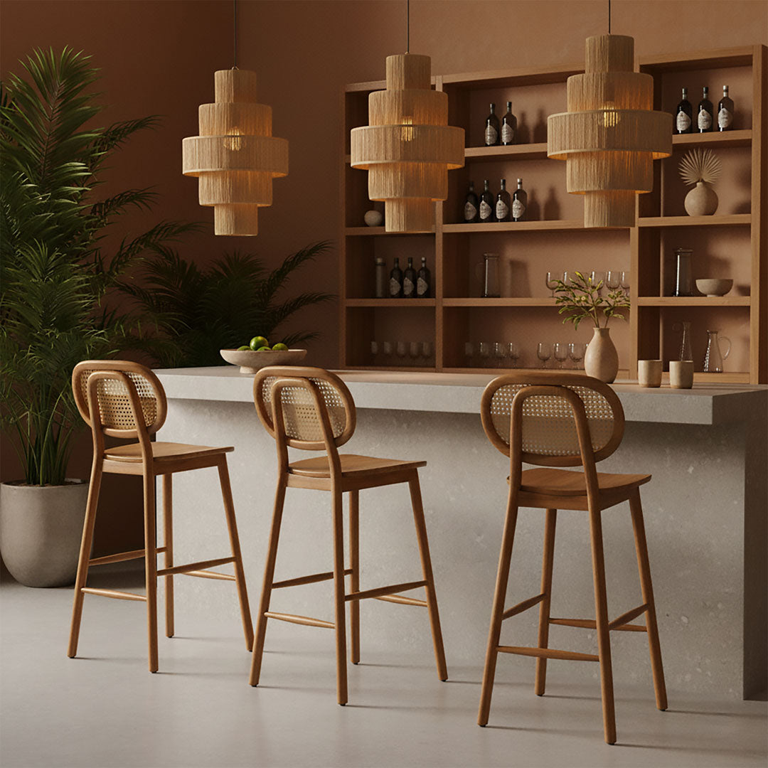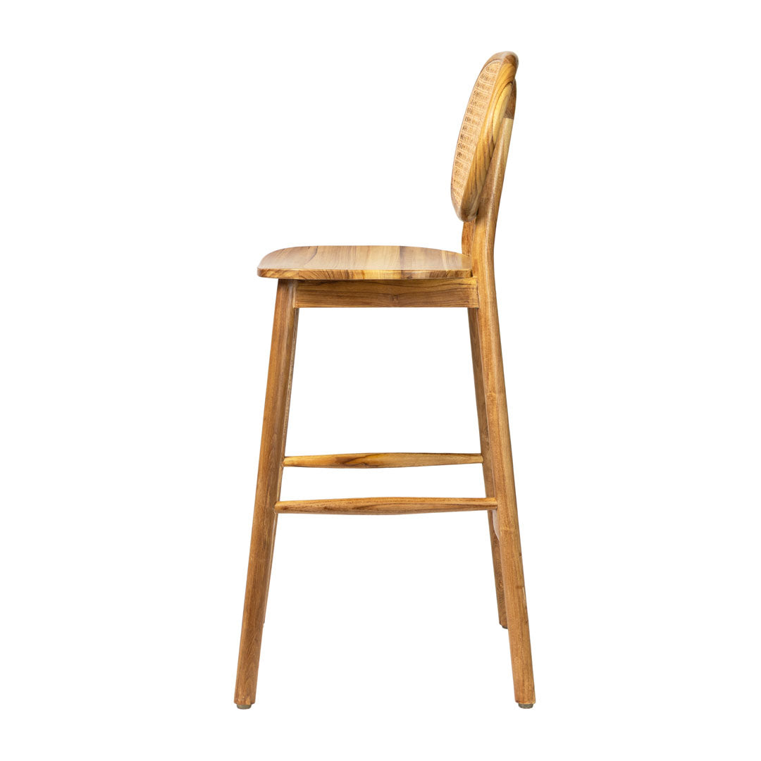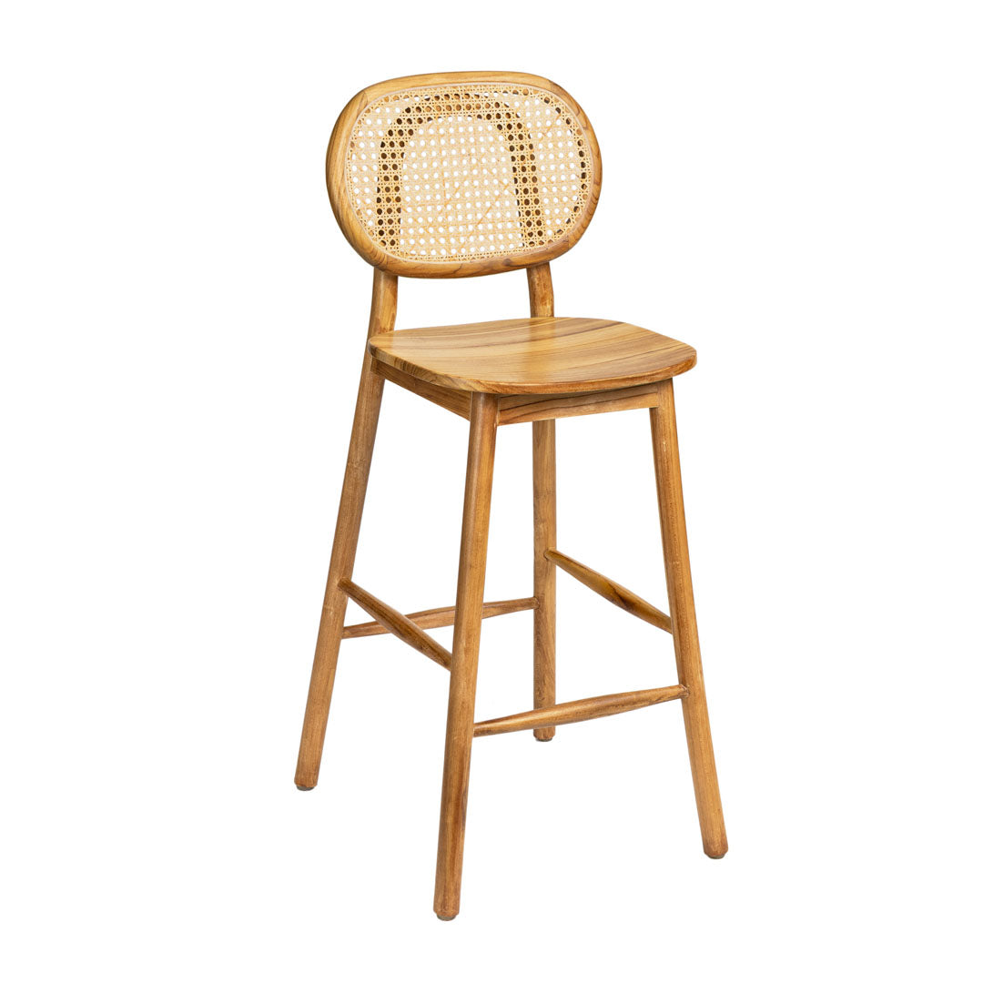 Scaun de bar din lemn de tec si ratan Tove