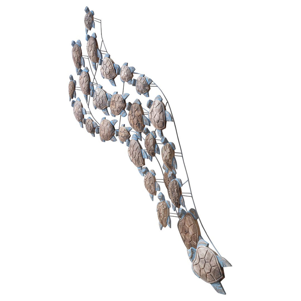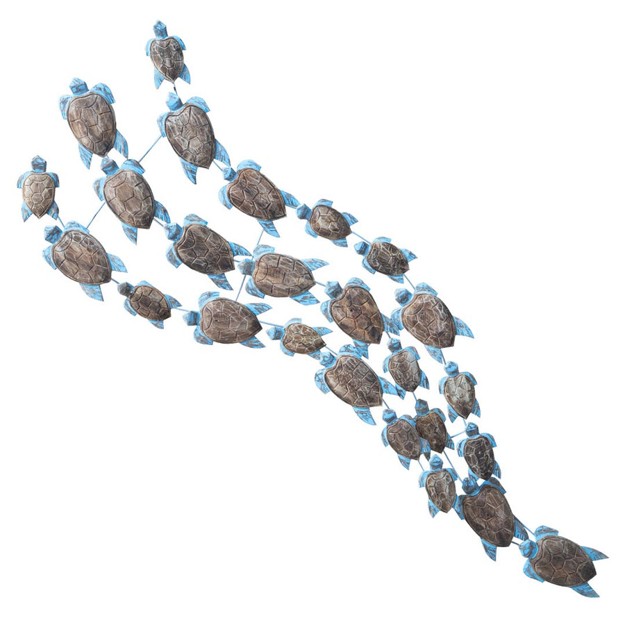 Decoratiune de perete albastra din lemn de albasia si metal 150 cm