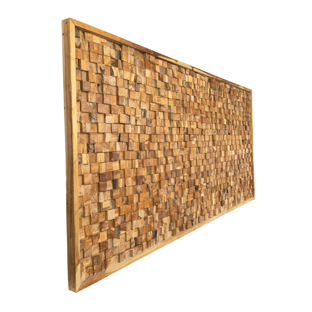Decoratiune perete maro din lemn de tec Tesera 244x5x122cm