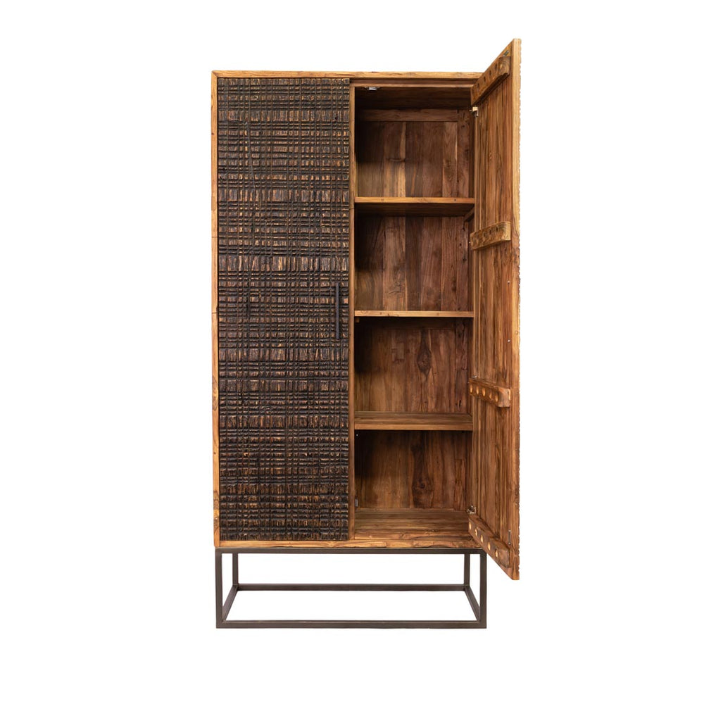 Dulap maro din lemn de tec cu picioare de otel Roka