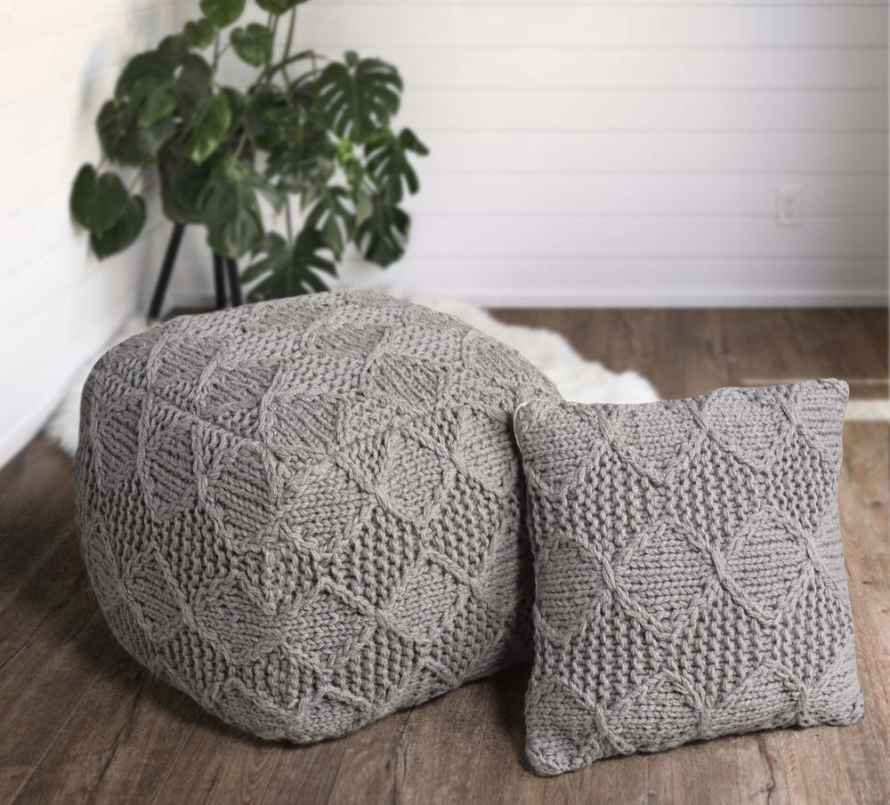 Imbinand eleganta cu functionalitatea, Puf Gri Kinzie reprezinta alegerea ideala pentru cei ce doresc sa adauge o nota de rafinament si un plus de confort casei lor. Acest puf este versatil, atat prin forma sa geometrica minimalista, cat si prin nuanta neutra placuta, si absolut original prin textura tricotata.