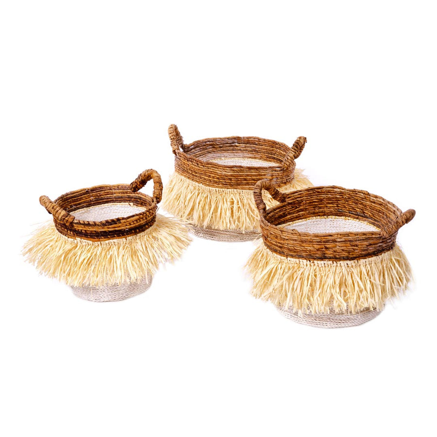 Set 3 cosuri albe din frunze de bananier si fibre sintetice