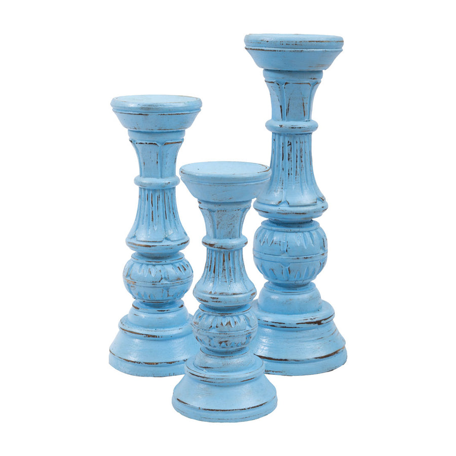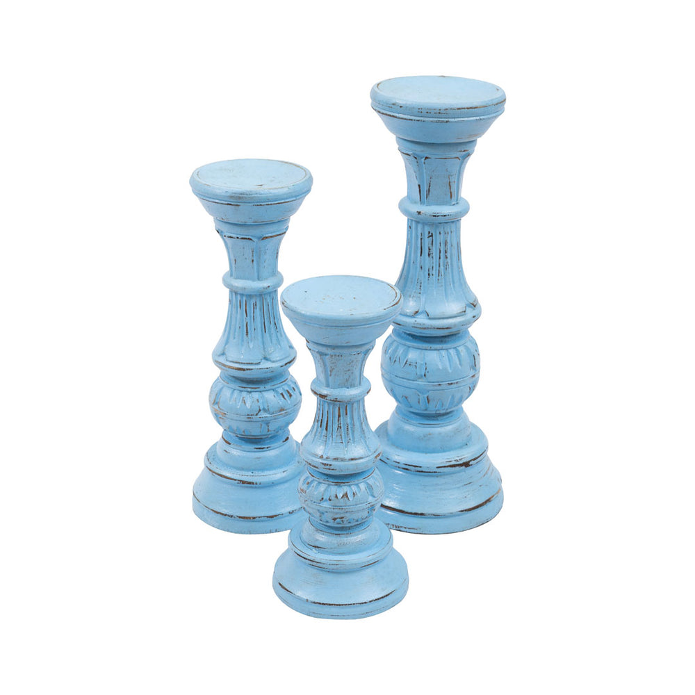Set 3 suporturi pentru lumanari albastre din lemn de albasia