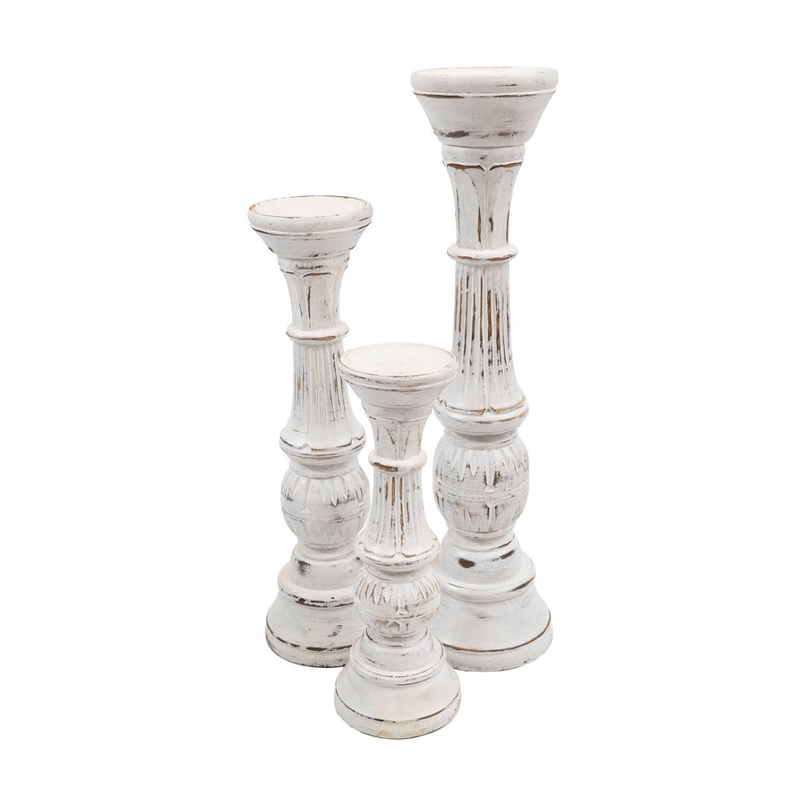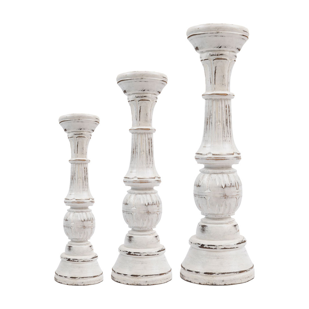 Set 3 suporturi pentru lumanari albe din lemn de albasia