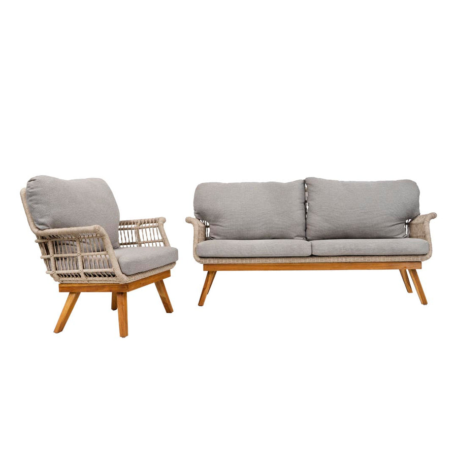 Set canapea si 1 fotoliu din lemn de tec franghie