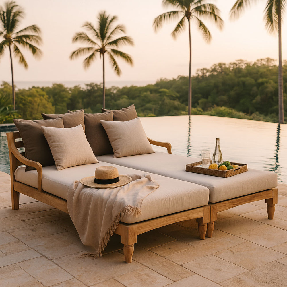 Sezlong dublu din lemn de tec si bumbac Elysia