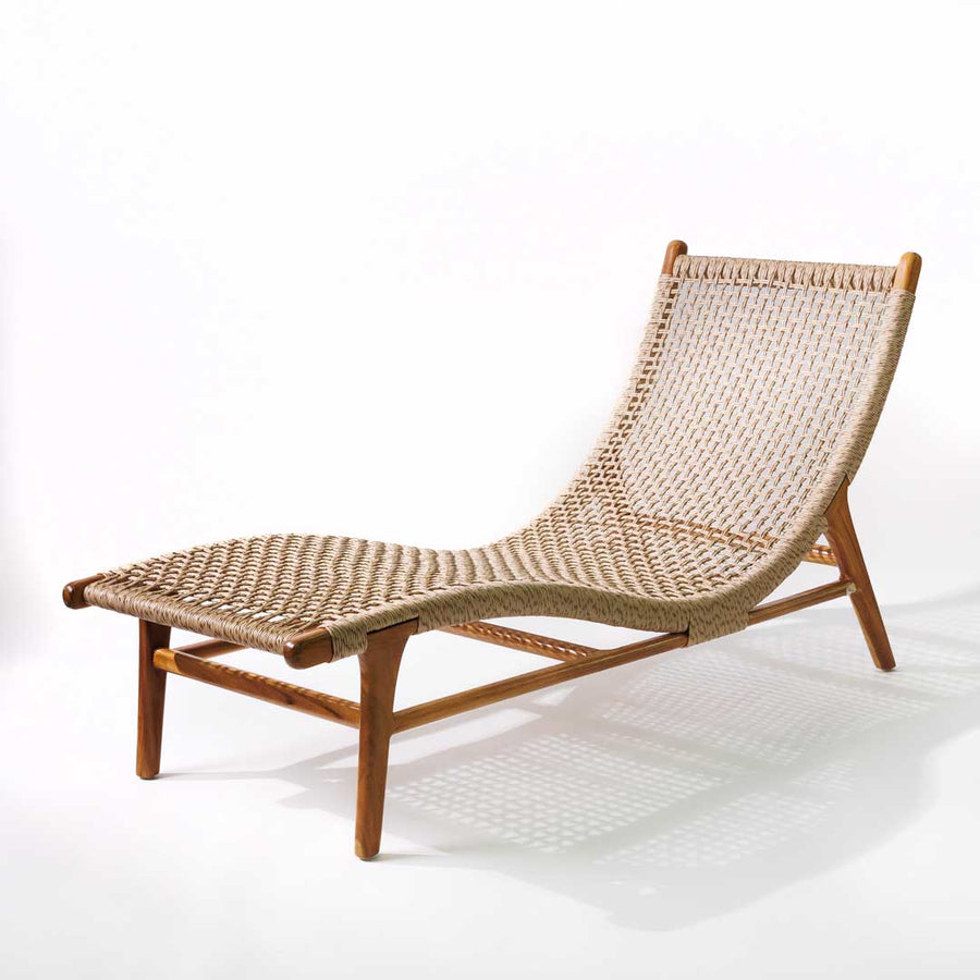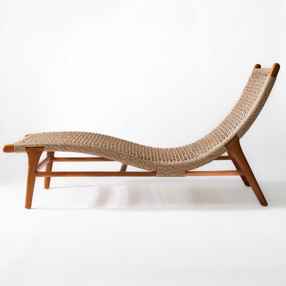 Sezlong maro din lemn de tec, ratan sintetic Zanzibar