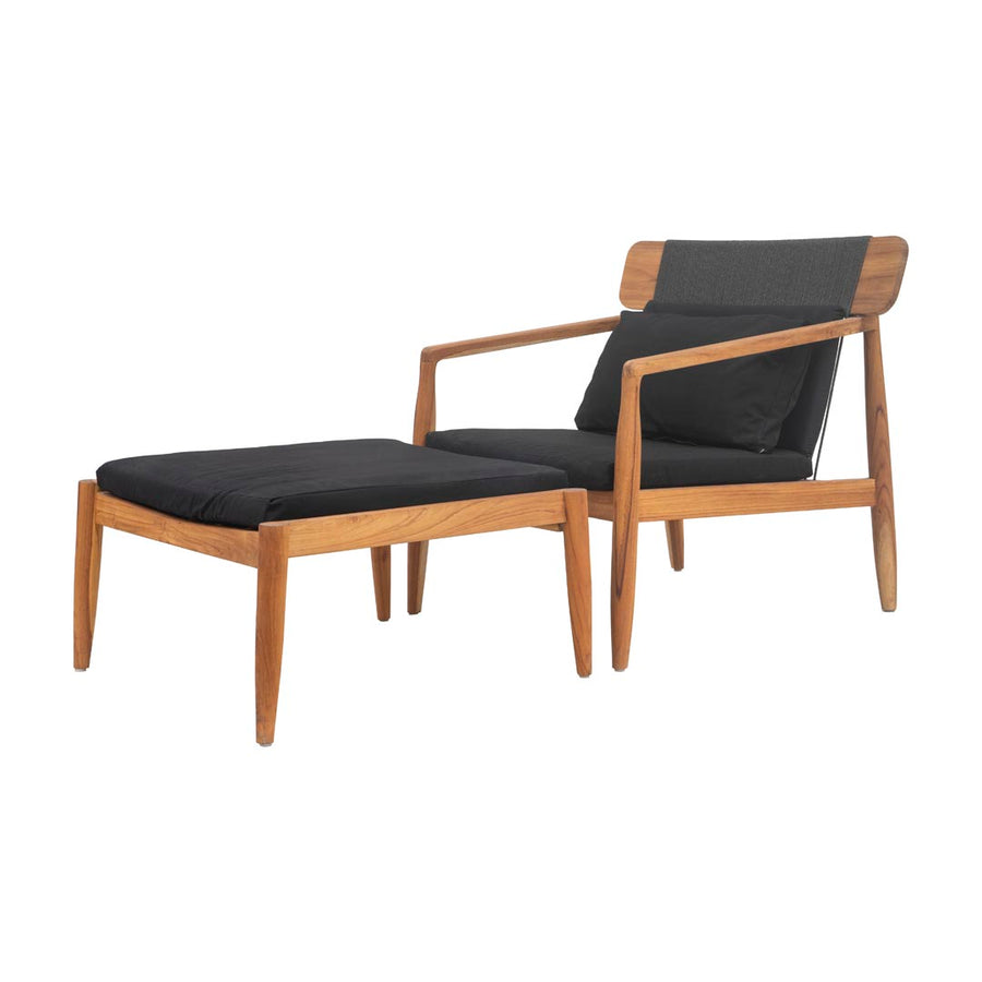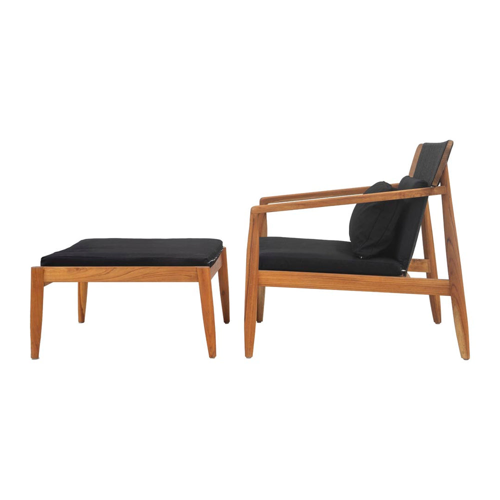 Sezlong negru din lemn de tec si perne de bumbac