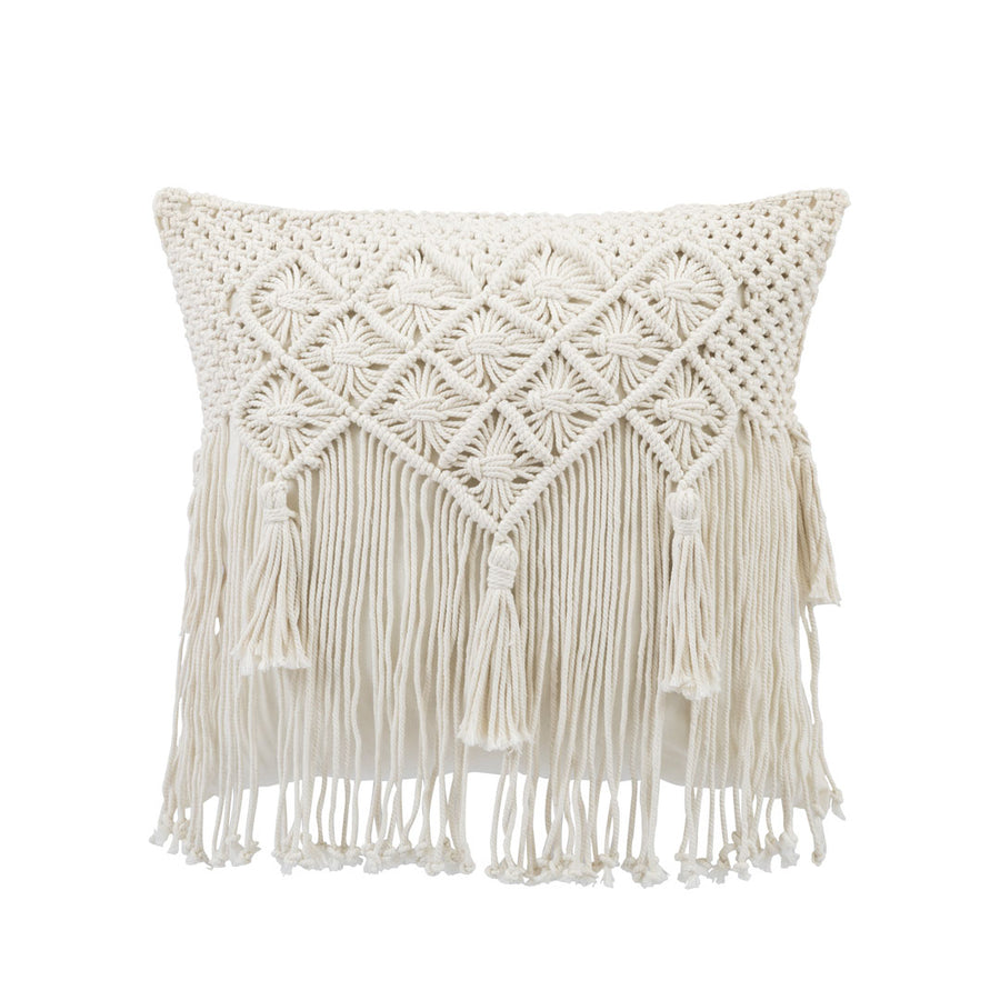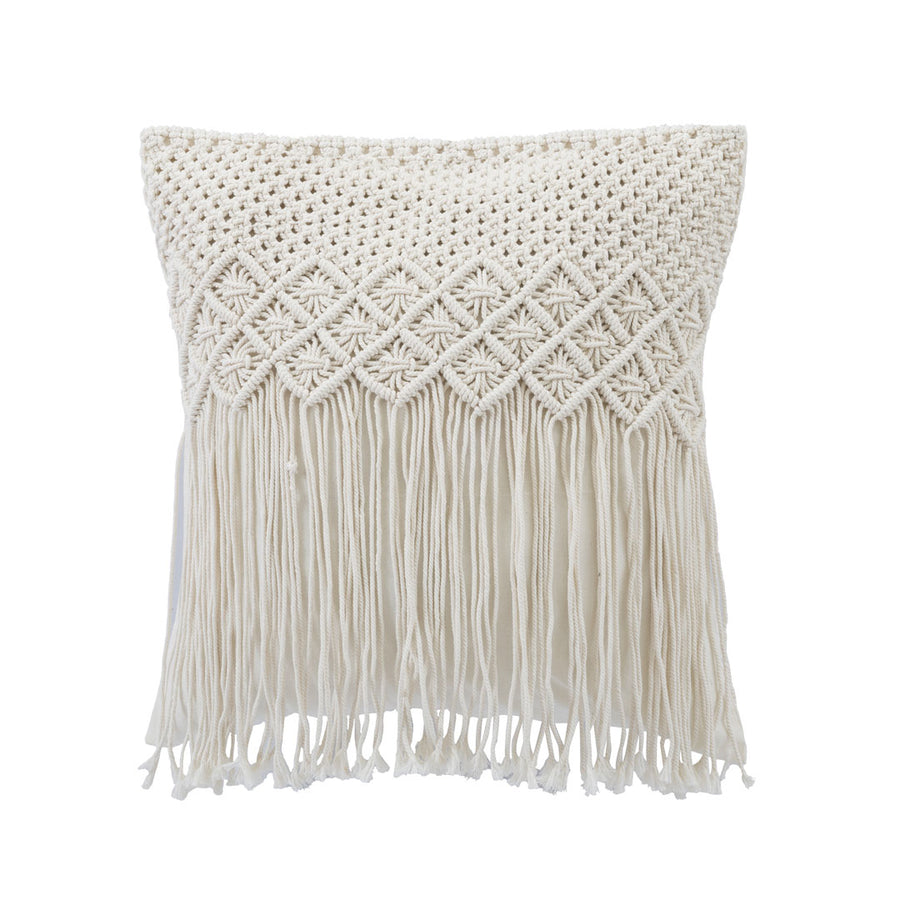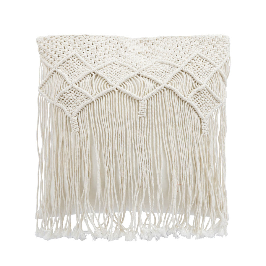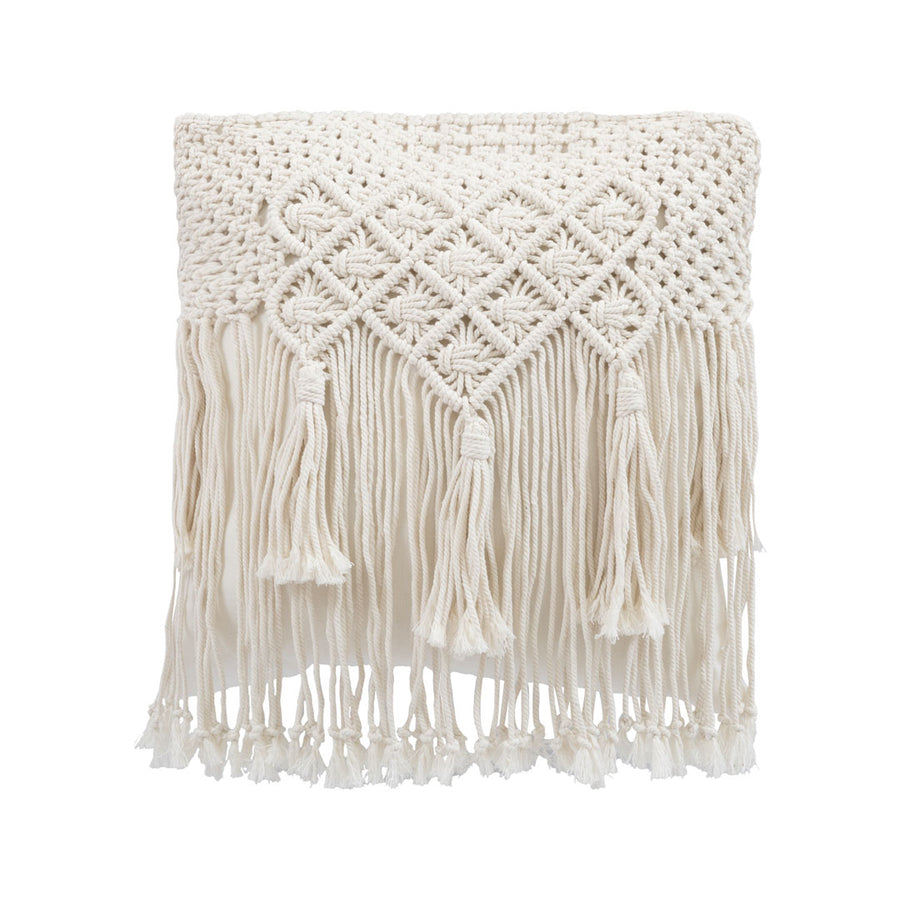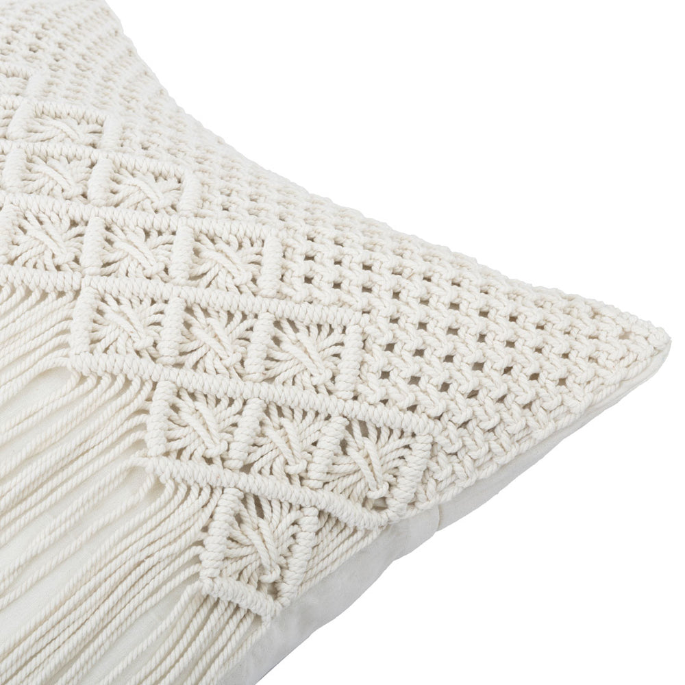 Perna alba din bumbac Macrame 50 x 50 cm